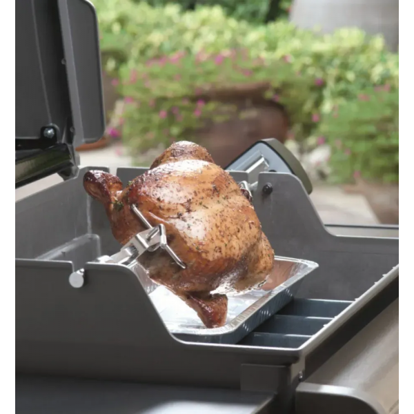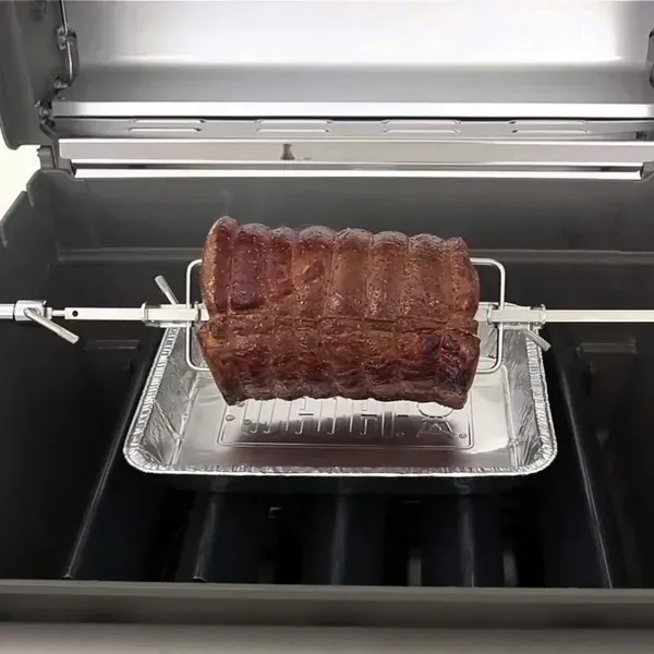 Курица целиком, большие куски мяса – на вертеле можно готовить блюда с размахом! Электрический вертел с двигателем позволяет постепенно запекать большие продукты. Вертел оборудован двумя вилками, на которых легко поместится целая курица или мясной рулет. Благодаря прогрессивной системе аксессуара, блюда внутри будут сочными, а снаружи – покрытыми хрустящей корочкой.