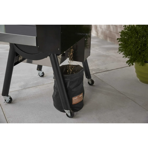 Зберігайте паливо для пелетного гриля та брикети у стійкому до атмосферних впливів мішку. Мішок вміщує до 9 кг палива для грилю, обладнаний ручкою для перенесення, а також нижньою ручкою, з якою зручно висипати вміст. Для зручності ідентифікації, є віконце для маркування палива. Порожній мішок компактно складається для зберігання.
